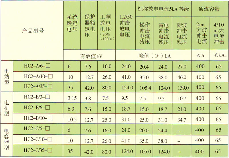 表二:HC2系列過電壓保護(hù)器主要技術(shù)參數(shù)