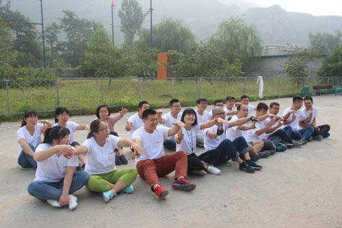 大家分成兩組坐在地上,為自己前方的人捏肩捶背,然后轉(zhuǎn)身向后輪換。游戲迅速消除了員工們的陌生感,營造了很好的拓展氛圍,奠定了團隊建設(shè)的基礎(chǔ)。